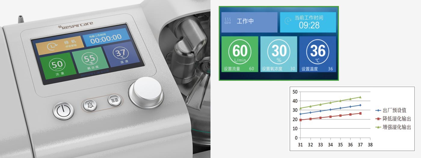 該治療設備主要包括空氧混合裝置、濕化治療儀、高流量鼻塞導管以及連接呼吸管路。