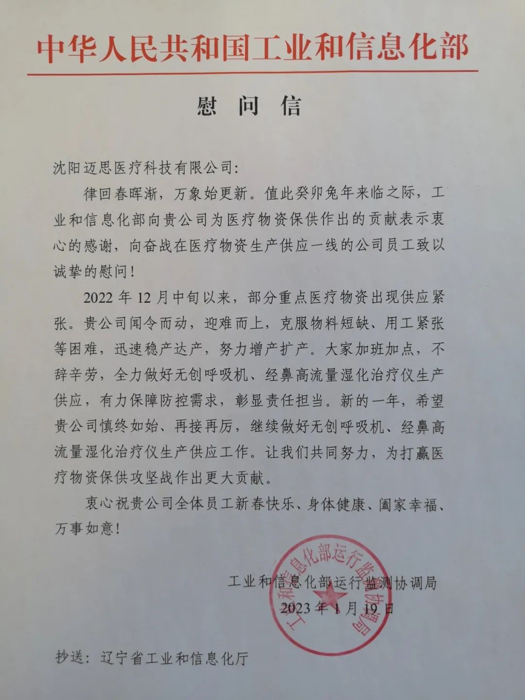 ?2022年年底,全國各地防疫物資需求增大,邁思在原料供應、熟練技術(shù)工人、生產(chǎn)成本面臨著(zhù)巨大壓力和挑戰。在這關(guān)鍵時(shí)期,我司得到了國家、省、市、區各級政府的大力支持。沈陽(yáng)市委市政府主要領(lǐng)導、國家工信部、遼寧省工商聯(lián)、沈陽(yáng)市總工會(huì )和市政府各相關(guān)部門(mén)領(lǐng)導和同志先后蒞臨企業(yè),深入一線(xiàn),從原料供應、人力招募和慰問(wèn)、注冊審批等多個(gè)關(guān)鍵環(huán)節幫助企業(yè)破解難題。使邁思在過(guò)去50天產(chǎn)能產(chǎn)量逐日提升、有力保障了防疫救治物資的研發(fā)生產(chǎn)和銷(xiāo)售。