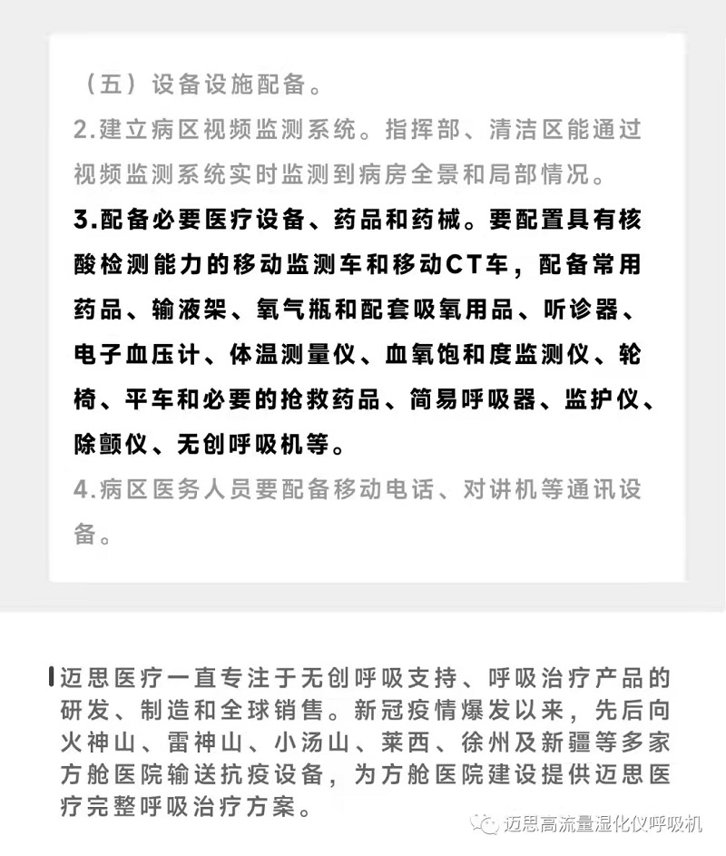 邁思醫療完整呼吸治療方案助力方艙醫院建設